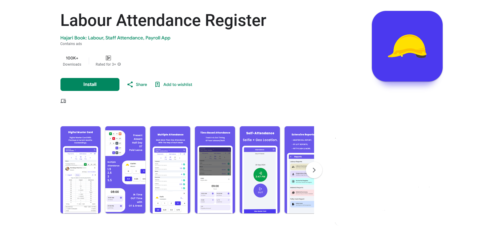 Labour Attendance Register adalah aplikasi yang dirancang untuk mempermudah pengelolaan kehadiran tenaga kerja, manajemen material, dan pencatatan kas kecil dalam proyek Anda. Dengan fitur pelacakan kehadiran harian dan bulanan yang efisien, aplikasi ini memastikan koordinasi proyek berjalan lancar dan tepat waktu.