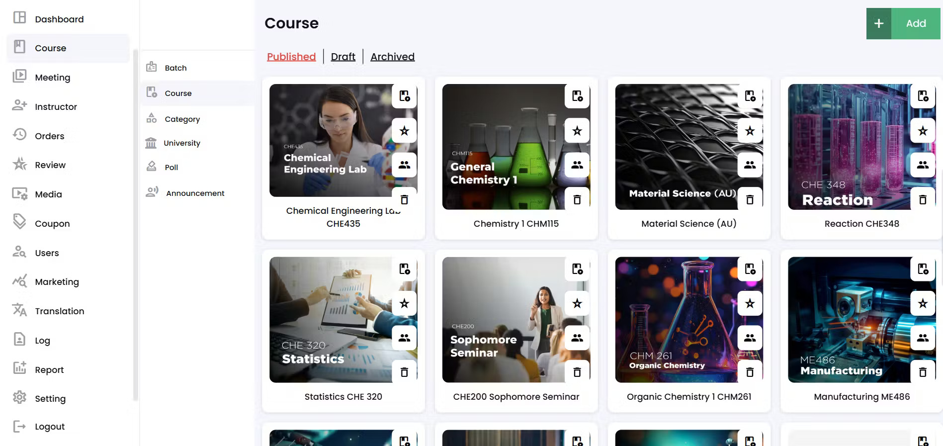 - Manajemen kursus yang fleksibel, termasuk sistem batch.